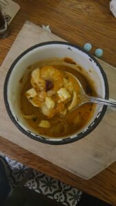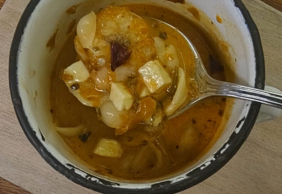 Con la misma pasión, me mostró su joya más crujiente: la carantanta, una fina fritura de maíz dorado que en su versión se sirve con una salsa de maní al estilo tailandés. Es un bocado que sorprende, une tradición y modernidad, y demuestra que en su cocina los sabores locales pueden volar alto sin perder su raíz. ✨